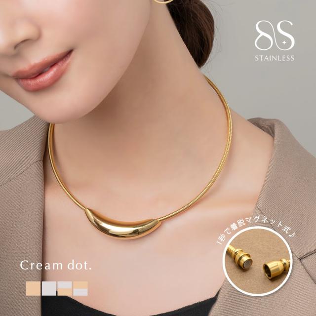 【サージカルステンレス】ステンレス製 チョーカー 金属アレルギー対応 マグネットクラスプ 1秒着脱 ワンタッチ 簡単装着 ネックレス つけっぱなし 三日月 ぷっくり ミックスカラー ゴールド シルバー