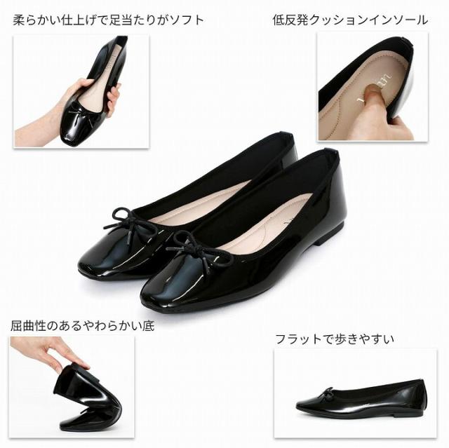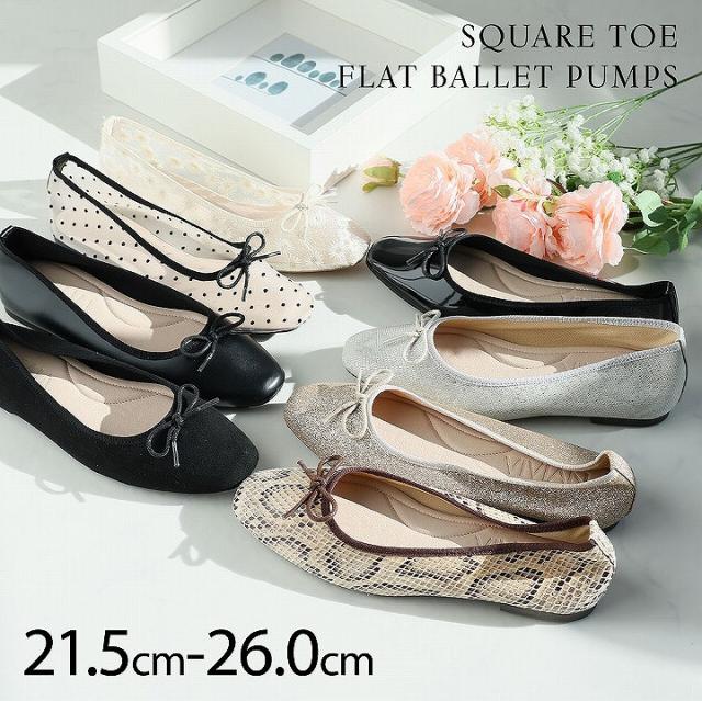 スクエアトゥソフトタッチフラットバレエシューズ