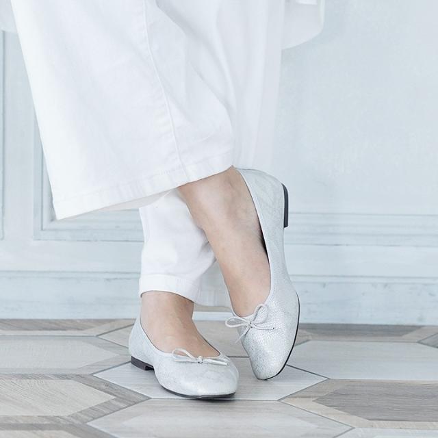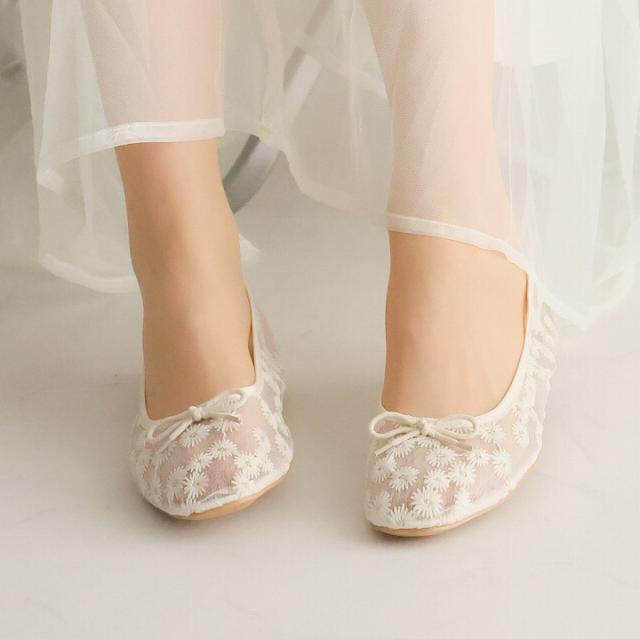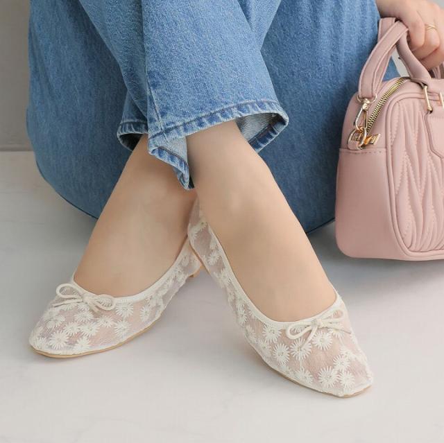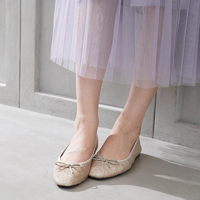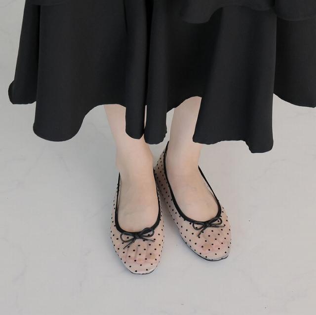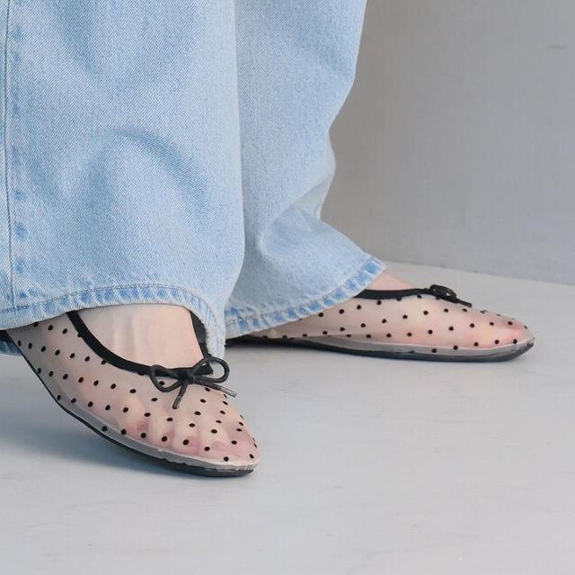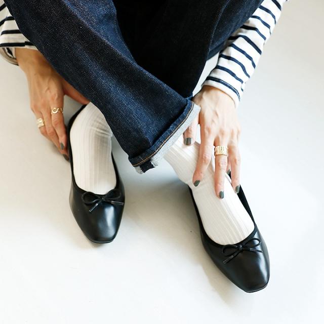 素足はもちろん、ソックス合わせもサマになるバレエシューズデザイン!
