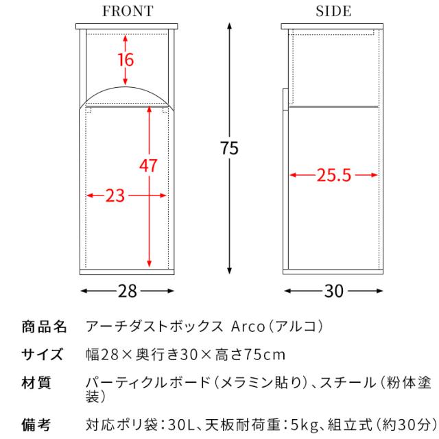 | 備考 | 対応ポリ袋:30L、天板耐荷重:5kg、組立式(約30分) |