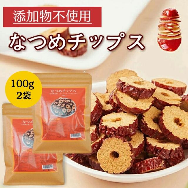 なつめチップス 100g/袋 サクサク食感 ナツメ ドライ 化学肥料農薬不使用 無添加 なつめ茶 薬膳茶 食材 料理 栄養をとじこめた低温乾燥 種抜き済み 油・砂糖など一切不使用