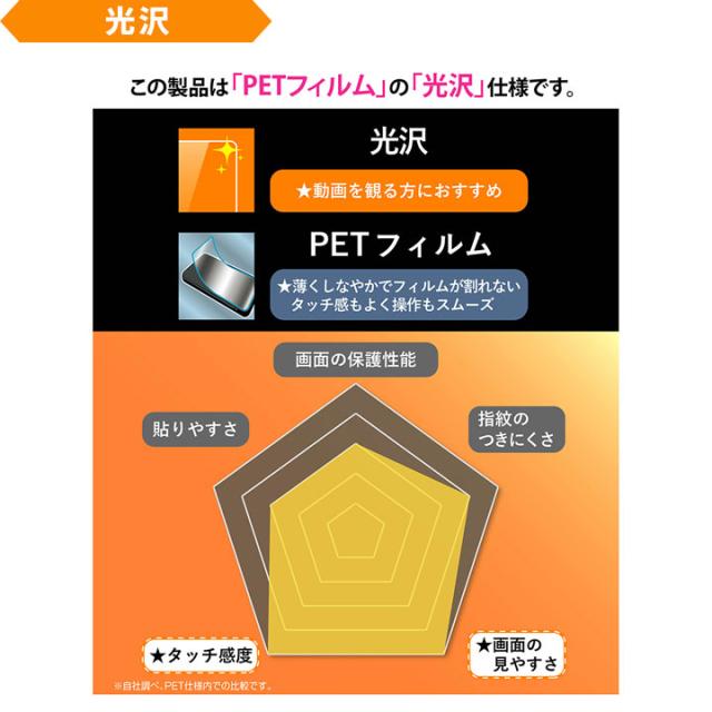 割れにくく、しなやかなPET素材を使用した光沢フィルム。