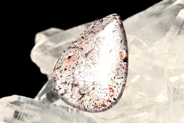 | 特徴・意味 | 水晶の中でレピドクロサイトの内包が舞っているような様をご堪能いただけます。 パワーが湧き出てきそうな煌めきの泉に癒やされること間違いなし! マクラメ編みやワイヤーアートにおすすめです。 水晶にレピドクロサイト(鱗鉄鉱)が内包された天然石です。 綺麗なアベンチュレッセンス効果が見られます。 (アベンチュレッセンス効果とは、結晶中に含まれた内包鉱物結晶が見せるキラキラとした輝きのことです) 赤く美しい物はファイアークォーツ、その他にもハーレクインクォーツ、ハーレクイン水晶など流通名を多数持った天然石です。 |