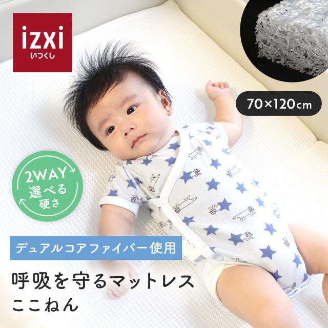 呼吸を守るマットレス ここねん izxi いつくし ベビーベッド 70×120 洗える 添い寝マット 折り畳み 高反発 ファイバー 通気性 赤ちゃん プレイマット
