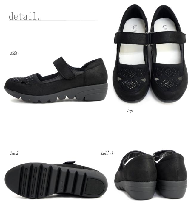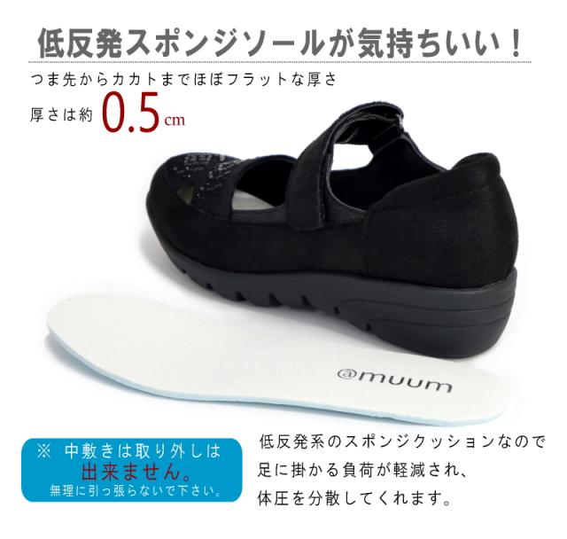 スニーカー レディース きれいめ 厚底 MUUM ムーム ストラップシューズ 靴 クリアストーン ビジュー 面ファスナー ベルクロベルト 軽量 ウェイビーソール グリップ 滑りにくい ラウンドトゥ 屈曲 3e