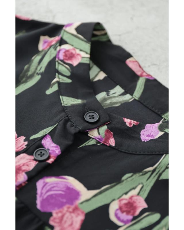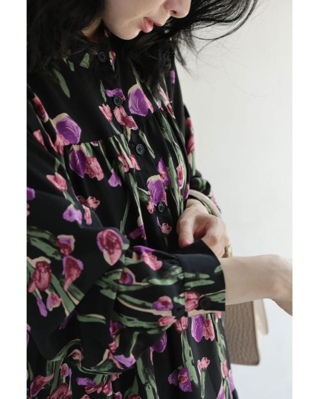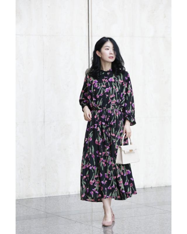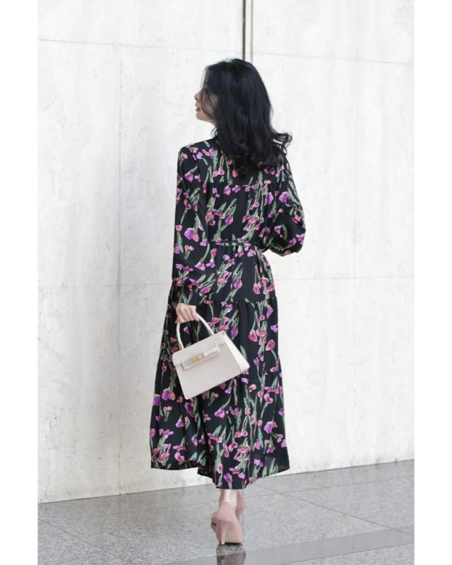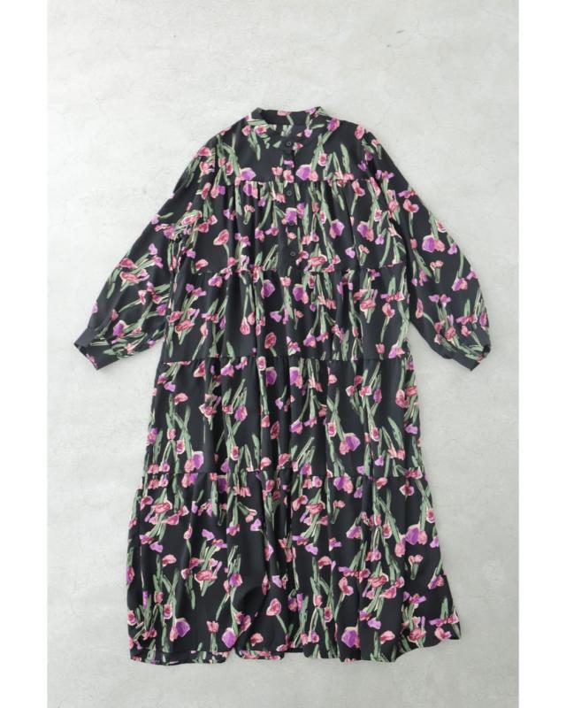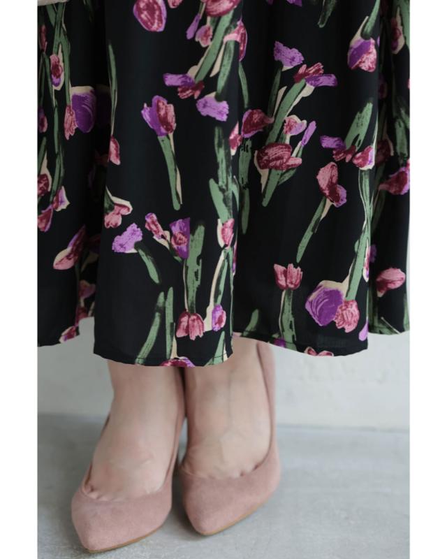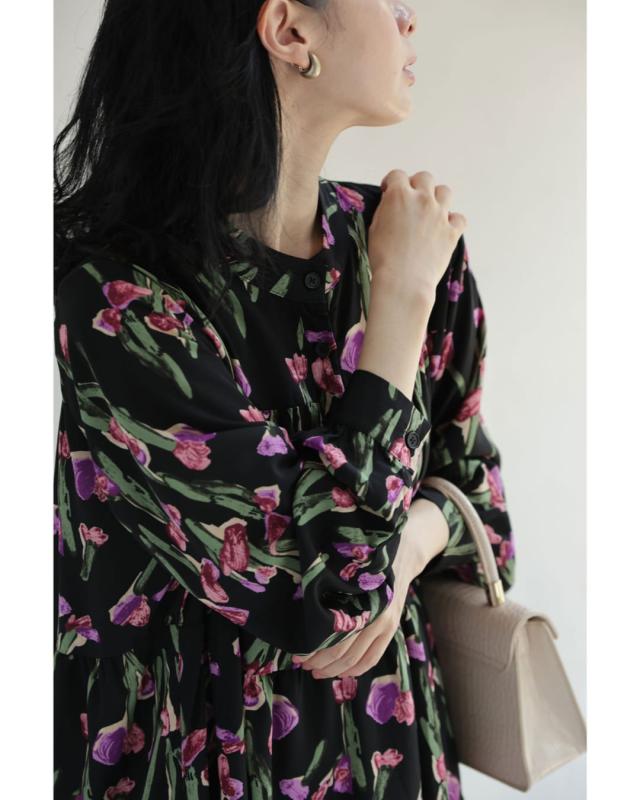 w50557nc 新作 新着 再入荷 CAWAII FRENCHPAVE フレンチパヴェ エレガント ベーシック カジュアル 可愛い かわいい カワイイ おしゃれ オシャレ お洒落 個性 個性的 定番 ベーシック 大人かわいい 大人可愛い 上品 女性らしい デザイン スタンダード ナチュラル きれいめ キレイめ シンプル フェミニン レディース レディースファッション 大人 ママ ミセス 30代 40代 50代 60代 紫色 花咲く クラシカル レディ ミディアム ワンピース 紐ベルト付き スタンドカラー 長袖 ロング袖 ティアード ふんわり 脚長見え効果 ウエストマーク メリハリ S M L 2L XL フリーサイズ フリー 小さめ 小さいサイズ 低身長 痩せ ほっそり 小柄 細身 標準サイズ 大きめシルエット 大きい 大きめ ビッグシルエット ゆったり F サイズ自由 春 秋 冬 春服 春物 秋服 秋物 冬服 冬物 体型カバー 楽ちん 楽チン ラク ブラック 黒色 花柄 フラワー柄 総柄 ガーデン 日常着 普段着 日常使い おでかけ 旅行 女子会 食事会 デート 買い物 大人女子