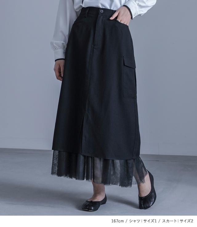23日最大1200円クーポン 【送料無料】『フリルヨークデザインシャツ×チュール切替ナロースカートコーデ2点SET』【メール便不可】【20】[2点コーデセット 2025 レディース シャツ トップス 長袖 ブラウス スカート ボトムス ロング丈]