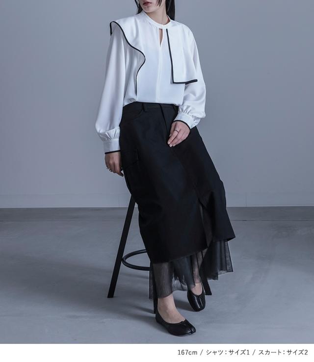 シャツ レディース トップス 長袖 ブラウス フリル プルオーバー スキッパー ビッグカラー ショート丈 タック ヨーク アシンメトリー アシメ 配色 無地 おうちで洗える 春 秋 冬 フォーマル モード キレカジ セレカジ フェミニン Sサイズ Mサイズ Lサイズ LLサイズ 3Lサイズ XLサイズ 体型カバー 10代 20代 30代 40代 50代 60代 低身長 高身長 大人女子 大人可愛い お洒落可愛い 大人カジュアル ラフ スタイリッシュ 洗練 エッジィ 上品 きれいめ かっこいい スカート ボトムス ロング丈 ナロースカート チュール カーゴポケット スーツ生地 セットアップ 上下セット ロングスカート ミモレスカート チュールスカート ミモレ丈 ベルトループ ウエストゴム スリット 異素材MIX ポケット ファスナー 裏地付き カジュアル シンプル マニッシュ ゆったり ゆる ぽっちゃり 大きいサイズ プラスサイズ オフホワイト ホワイト 白 ブラック 黒 202509 2点セット プレゼント 福袋 コーディネートセット コーデセット 中身が見える福袋 ギフトセット[ID]12co0pv