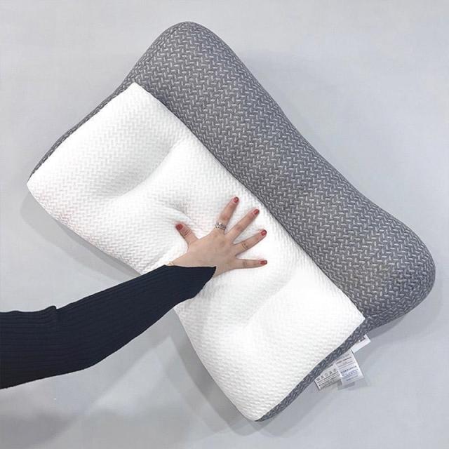 【低反発枕-枕】: 絶妙な配合比率で他にはない弾力性と柔軟性を実現低反発素材。かかる力に応じて包み込む度合が変化、常にバランスの取れた圧力吸収?分散を実現 あたなの後頭部や頸椎に優しくフィット。