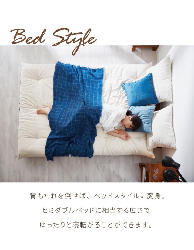 昼は背もたれ付きのロースタイルソファとして、夜はマットレスを敷いてベッドとしても活躍。