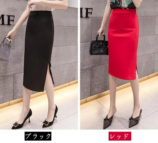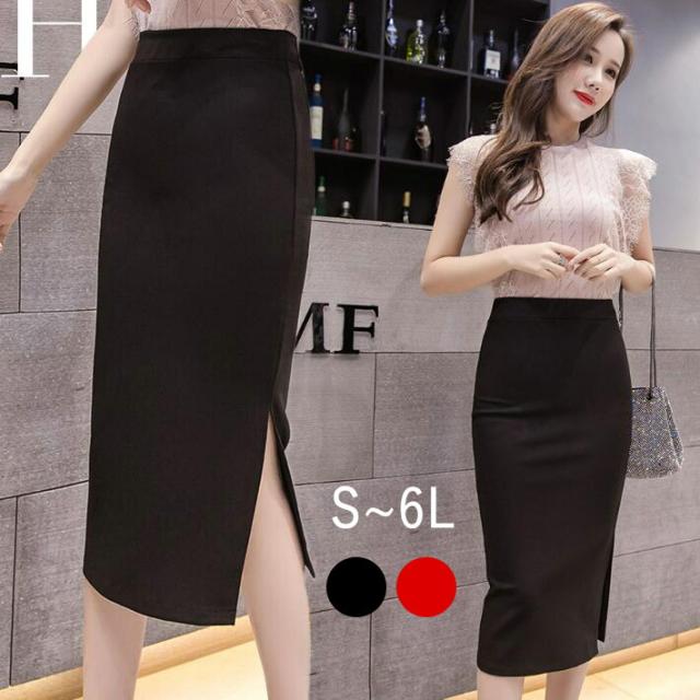 スカート タイトスカート ペンシルスカート ストレッチ ミディア丈 ひざ丈 ハイウエスト スリット ジュアル デート オフィス OL お出かけ S M L 2L 3L 4L 5L 6L