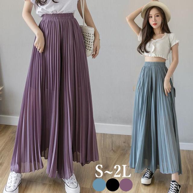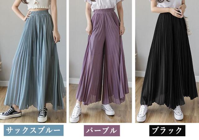 ガウチョパンツ プリーツスカーチョ プリーツパンツ スカーチョ ワイドパンツ ロング プリーツ ミモレ丈スカート レディースパンツ スカート風 美脚 体型カバー デート 女子会 フォマール S M L 2L