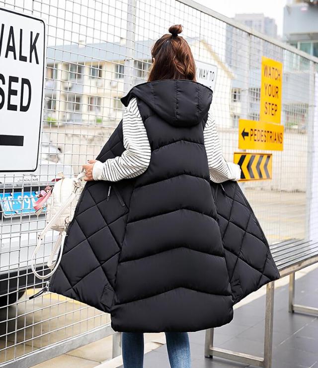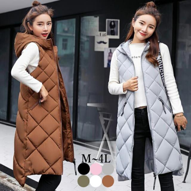 ロングベスト レディース 中綿 ベスト ダウンベスト コート ジャケット アウター フード付き 前後差 ロング丈 ノースリーブ 大きめサイズ 体型カバー 着痩せ 秋冬 防寒 M L 2L 3L 4L