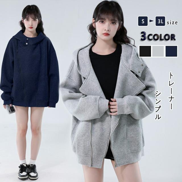 パーカーコート レディース スタンドカラー ジップアップパーカー スウエット トレーナー トルマンパーカー アウター 長袖 体型カバー フーディー ゆったり オーバーサイズ オシャレ ジップアップ S M L 2L 3L