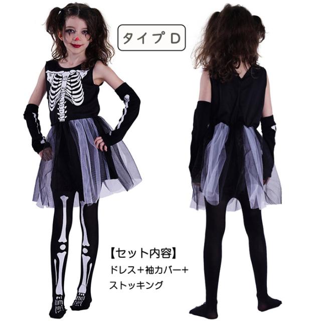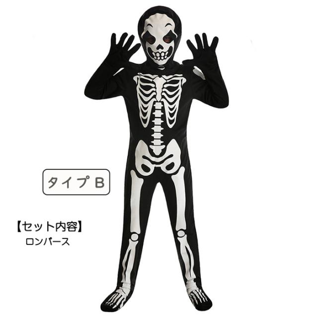 4タイプ ガイコツ コスプレ仮装 小悪魔 魔女 吸血鬼 幽霊 死神 キッズコスチューム スケルトン 骸骨 オールインワン 衣装 子供用 ハロウィン 悪魔 ドクロ 男の子 コスプレ衣装 女の子 コス ウィッチ 文化祭 演出服 デビル ハロウィーン 余興 文化祭 お化け ドクロ 骨 ホラー