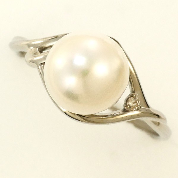 エステール K10WG リング 指輪 10号 パール(真珠) 約8mm ダイヤ 総重量約2.1g 中古ジュエリー