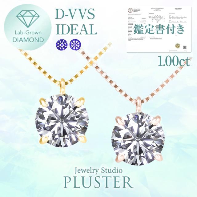ダイヤモンド ネックレス レディース 1カラット 1.0ct 鑑定書付き 一粒 プラチナ ダイヤネックレス ラウンド 一粒ダイヤ ゴールドネックレス K18 ラボグロウン ジュエリー アクセサリー ブランド 誕生日 プレゼント 女性 ギフト 記念日 母の日