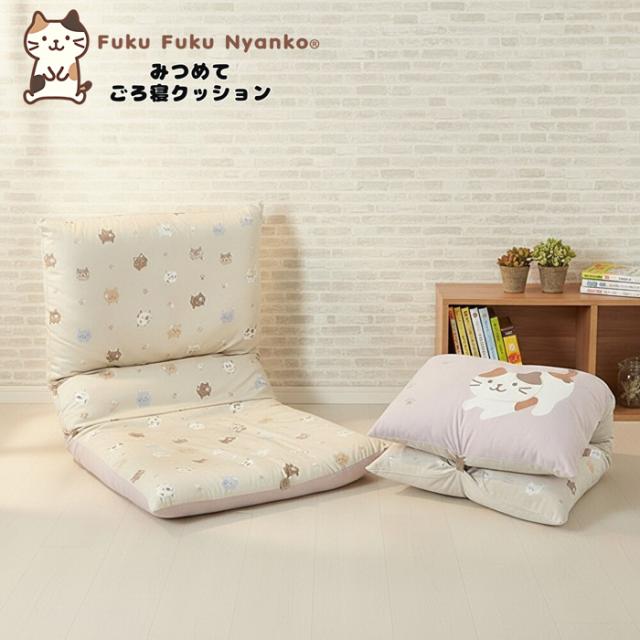 FukuFukuNyanko みつめてごろ寝クッション シートクッション ミケランジェロ チャチャ丸 ハッチ ふくふくにゃんこ 両面柄違い 折り畳める クッション ふくにゃん