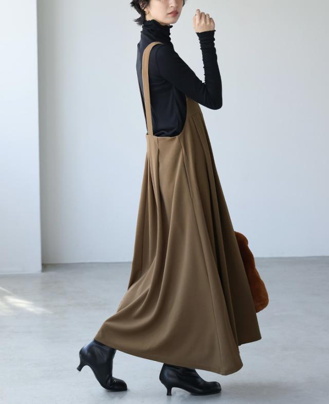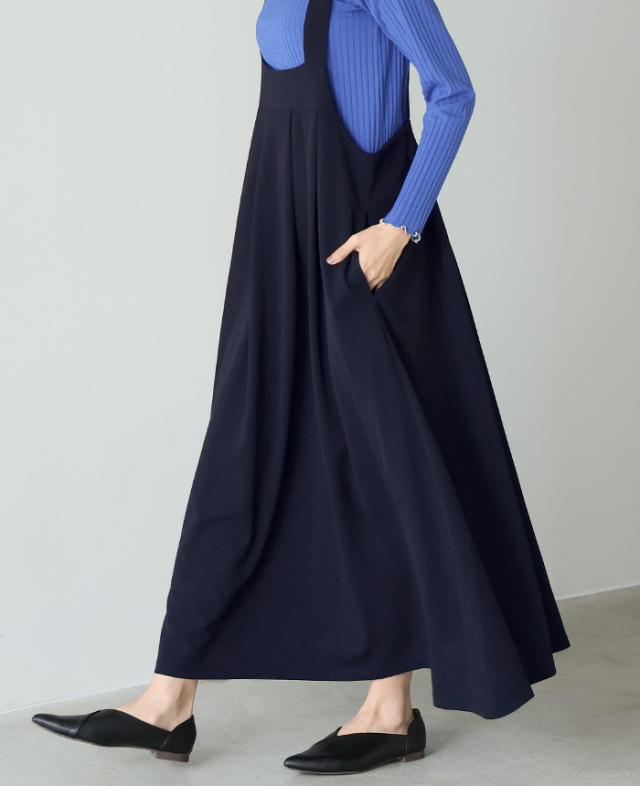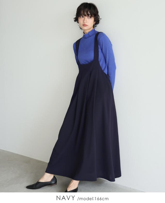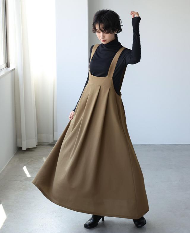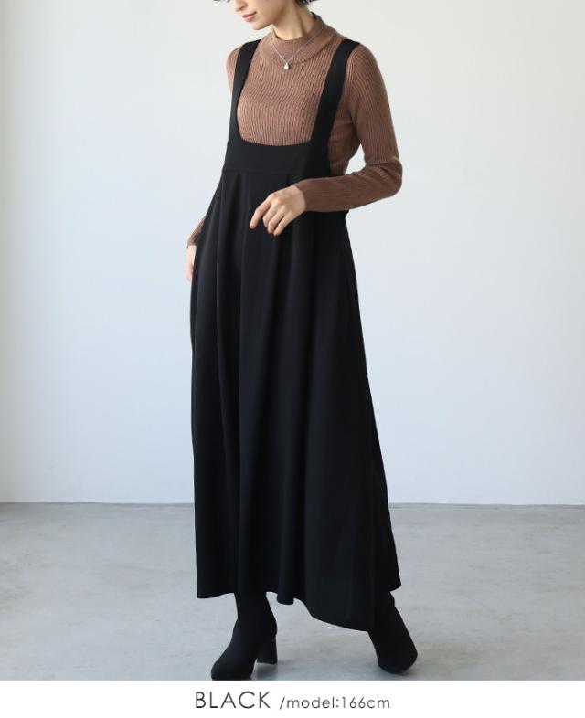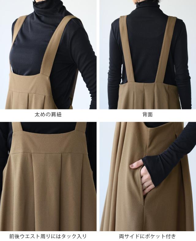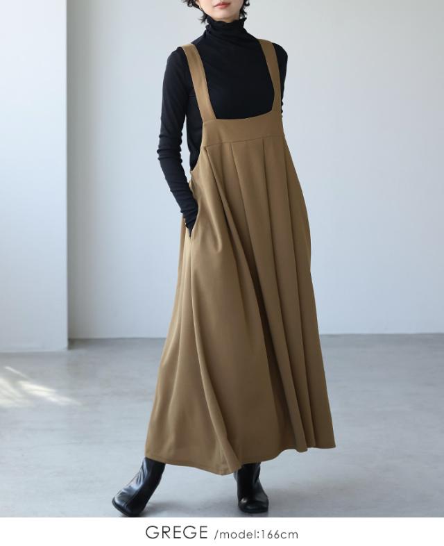 梨地タックジャンパースカート ワンピース レイヤード ジャンスカ レディース 無地 体型カバー 秋新作 ジョーゼット【メール便不可】