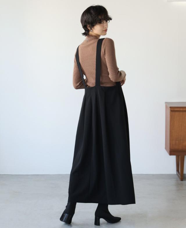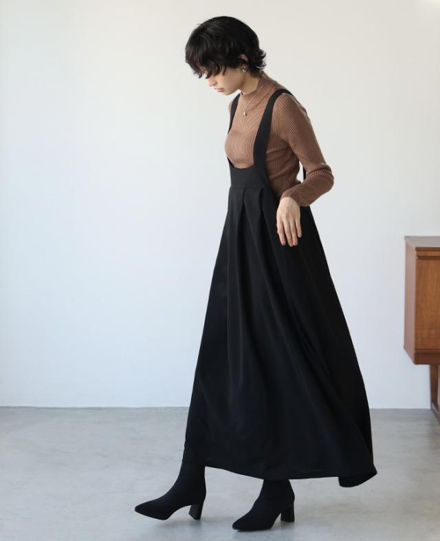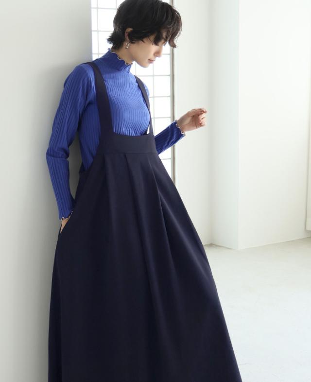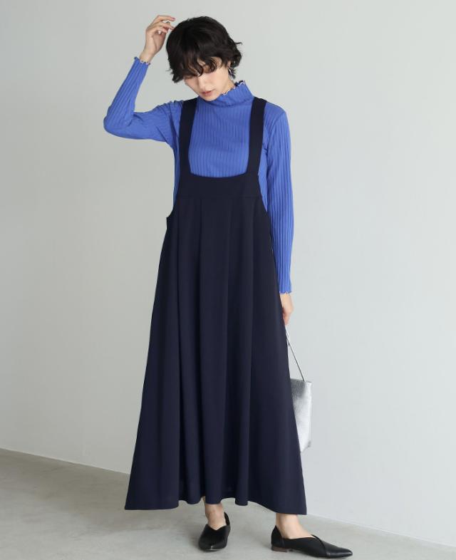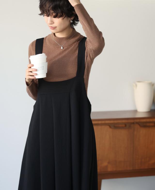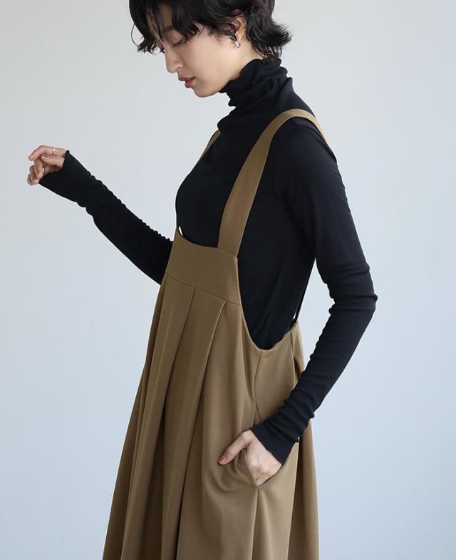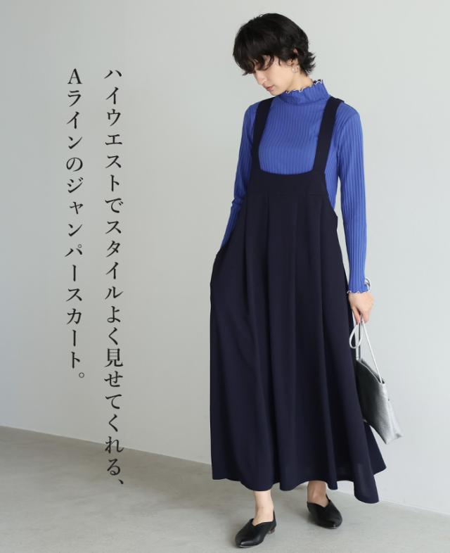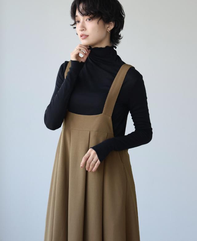 梨地タックジャンパースカート ワンピース レイヤード ジャンスカ レディース 無地 体型カバー 秋新作 ジョーゼット【メール便不可】