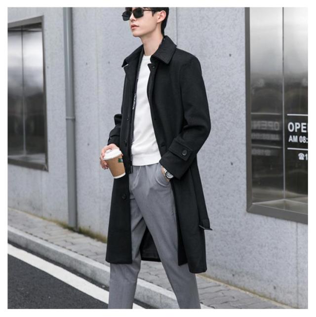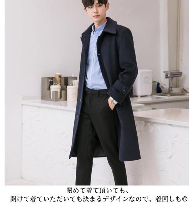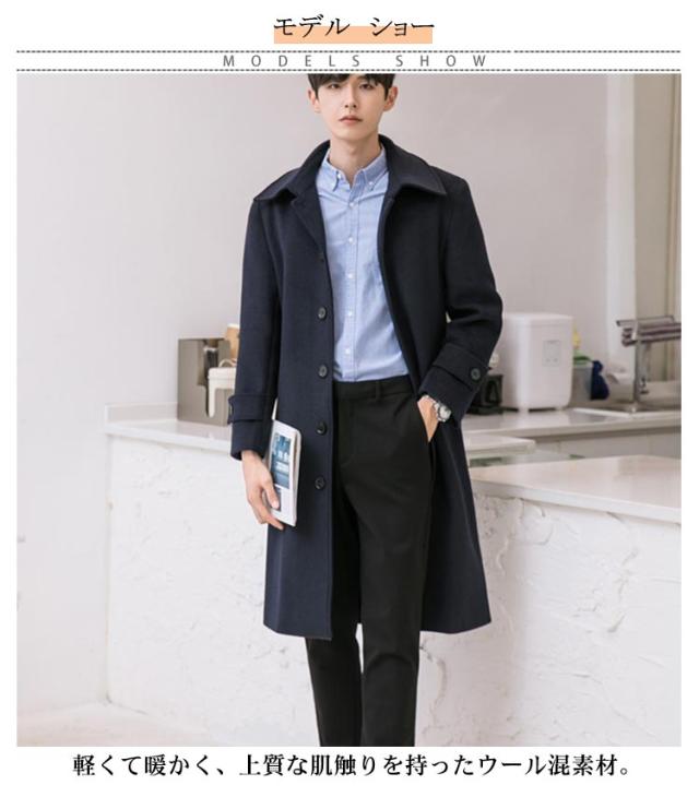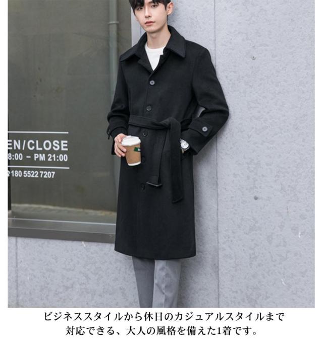 ウールコート メンズ ステンカラーコート 秋冬 トレンチコート ウール混 コート ロングコート ステンカラージャケット ウールジャケット 上着 アウター 防寒 暖かい ロング丈 ビジネスコート 細身 フォーマル ビジネス 冠婚葬祭 葬式 結婚式 冬服 秋服 秋冬 冬 秋 送料無料