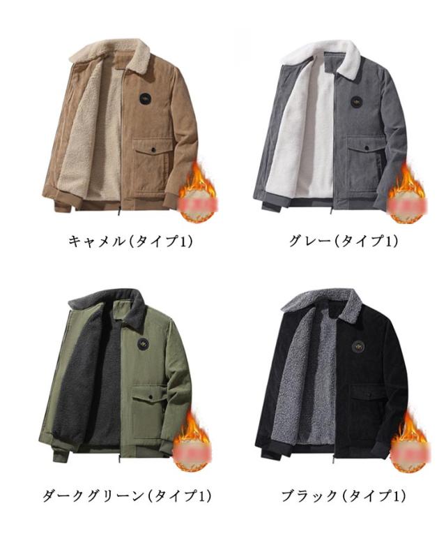 大人 30代 アウター 裏ボア 暖かい 防風 ランチコート 秋 ジャケット コーデュロイ ボアジャケット カジュアル コート 防寒 保温 20代 冬 40代 裏起毛 冬服 厚手 折り襟 オシャレ ブルゾン ファッション メンズ