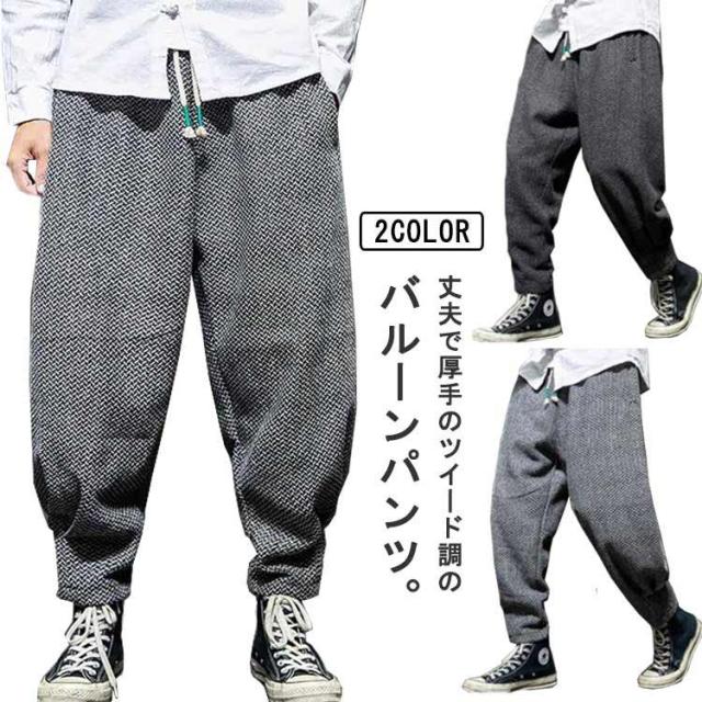 サルエルパンツ スケーターパンツ メンズ バルーンパンツ ツイードライク 秋 冬 微起毛 厚手 ワイド パンツ イージーパンツ ゆったり ルーズ ボトムス 長ズボン カジュアル ブラック 黒 グレー 無地 大きいサイズ【送料無料】