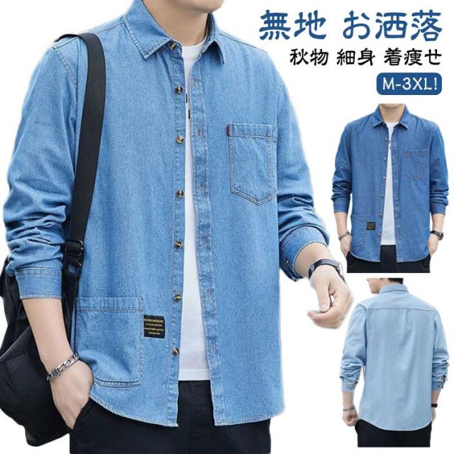 デニムシャツ メンズ トップス シャツ 長袖 シャツ アメカジ カジュアル シンプル ボタン 春 秋 ブルー 紳士 男性 カジュアルシャツ メンズシャツ 作業着 作業服 作業 長袖シャツ 秋 秋物 細身 着痩せ 無地 お洒落 メンズファッション M L XL 2XL 3XL 送料無料