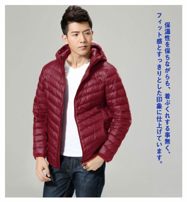 M-5XL! ライトダウンジャケット メンズ 秋 冬 ダウンジャケット 軽量 コンパクト エコダウン ジャケット ライトダウン インナーダウン アウター 長袖 フード付き ハイネック 薄手 防寒 保温 スリム フィット sale【送料無料】