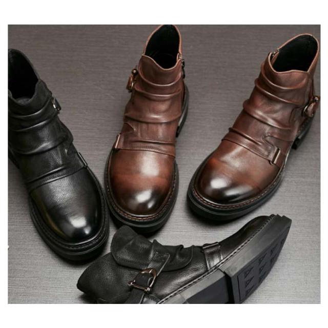 ブーツ メンズ エンジニアブーツ ドレープ ショート サイドジップ タンクソール 本革 牛革 黒 ブラック ブラウン おしゃれ 秋 冬 フォーマル カジュアルシューズ 人気 脚長 靴 メンズシューズ