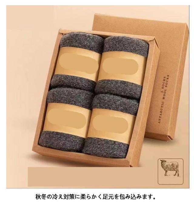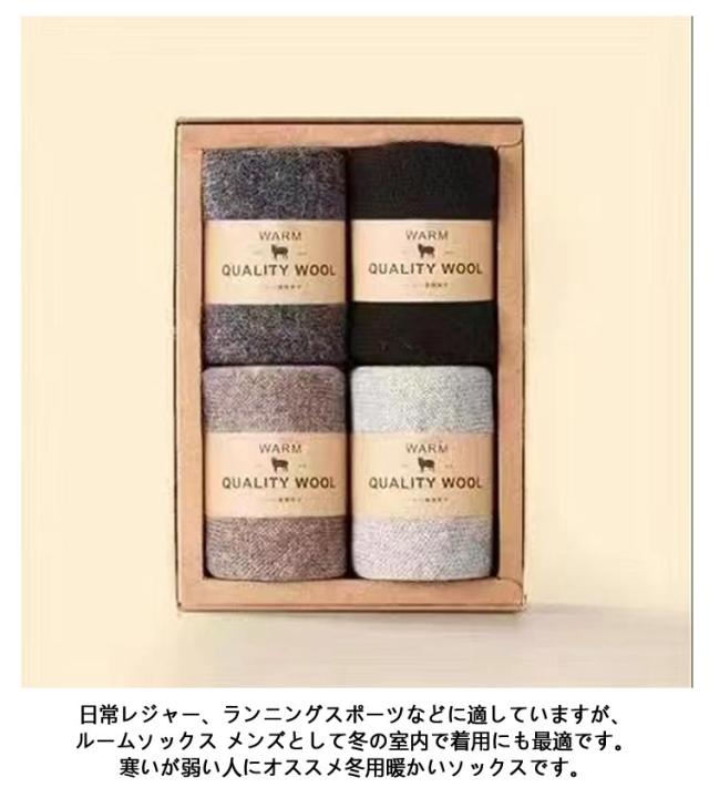 | 超厚手 裏パイル!あったか靴下4足セット☆ ウールを使用しているのでとても暖かく、蒸れにくいので冷え対策にもおすすめです。 秋冬の冷え対策に柔らかく足元を包み込みます。 適度な伸縮性で柔らかな履き心地です。 タオルみたい厚い生地の保温性がよく、冬に履くと普通の靴下と比べてより暖かくて、寒さ対策に靴下メンズ防寒ソックスとして、重ね履き用にもおすすめ! 日常レジャー、ランニングスポーツなどに適していますが、ルームソックス メンズとして冬の室内で着用にも最適です。寒いが弱い人にオススメ冬用暖かいソックスです。 | |