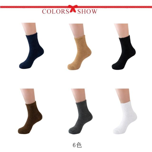 6足セット メンズ もこもこ 靴下 ルームソックス 無地 あったか靴下 レディース 男女兼用 暖かい モコモコ クルーソックス 厚手 防寒 対策 保温 厚手 秋 冬 ショートソックス くつ下 おやすみ 送料無料