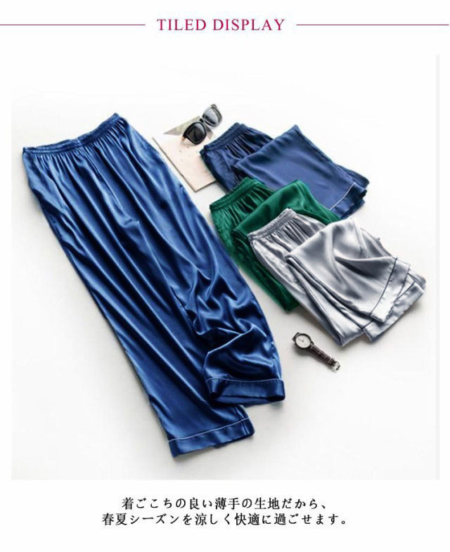 ルームパンツ ルームウェア 春 夏 秋 冬 メンズ レディース リラックスパンツ 長パンツ ナイトウェア シルクタッチ 光沢 長パン ロング丈 ボトムス ズボン パジャマ 寝巻き 部屋着 ウエストゴム 男女兼用 通気性 冷感 涼しい カジュアル 大きいサイズ