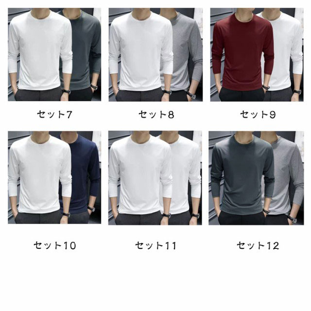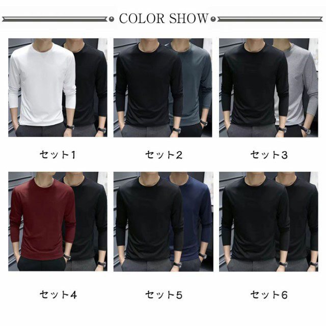 2枚セット Tシャツ メンズ 長袖 無地 ロンT 長袖Tシャツ 重ね着風 クルーネック ティーシャツ ドライTシャツ 吸汗 速乾 スポーツ 運動会 インナー シンプル 大人 カジュアル 細身 大人 黒 白 秋 冬 春 20代 30代 40代 送料無料 M L XL 2XL 3XL 4XL 5XL