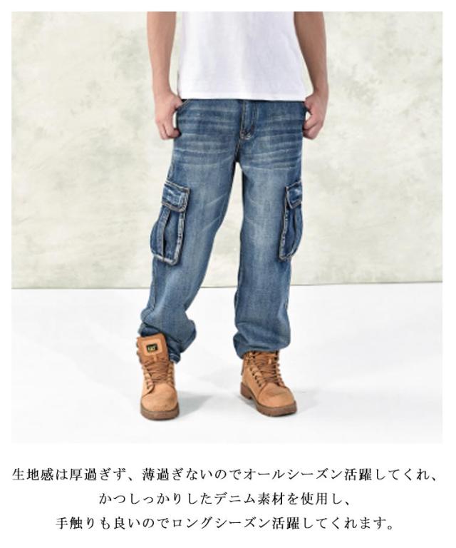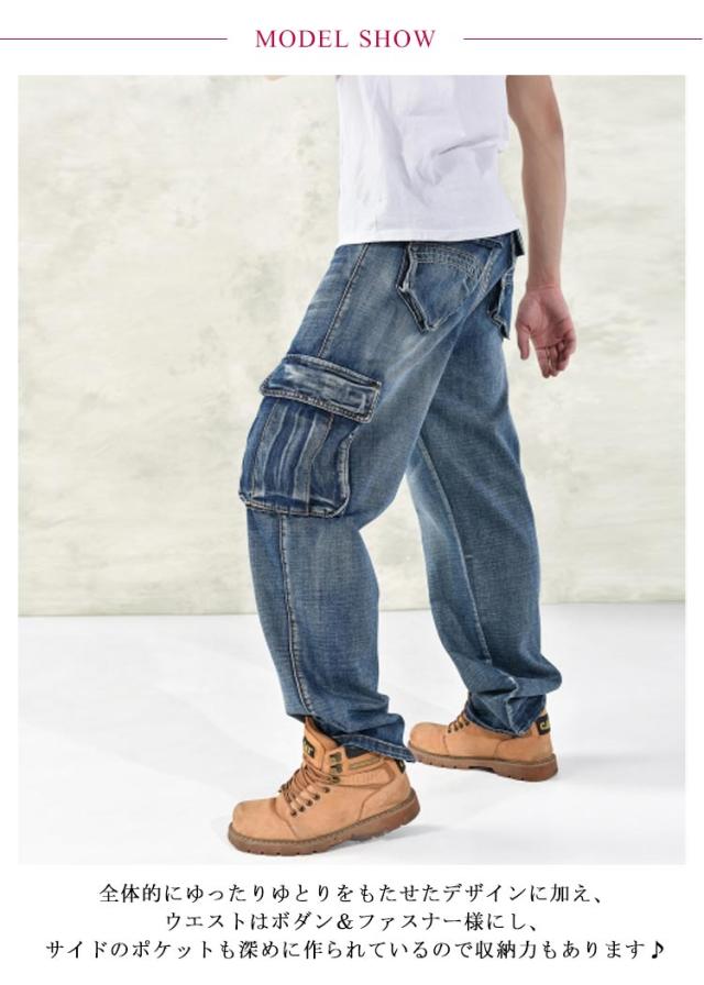 6ポケット デニム カーゴパンツ ワイドパンツ デニムパンツ バギーパンツ メンズ 大きいサイズ ゆったり ジーパン 大き目 太め ジーンズ ダンス衣装 ヒップホップ ストリート系 B系 春 夏 秋 冬