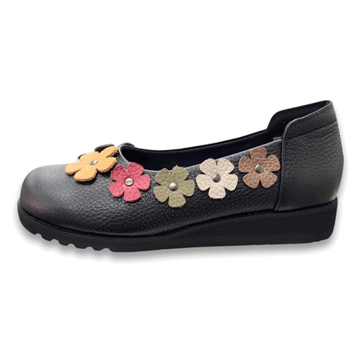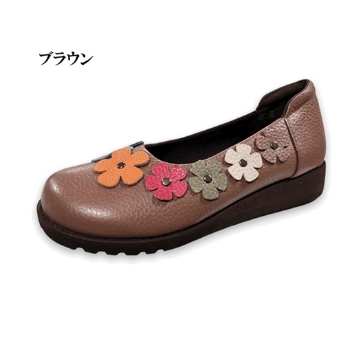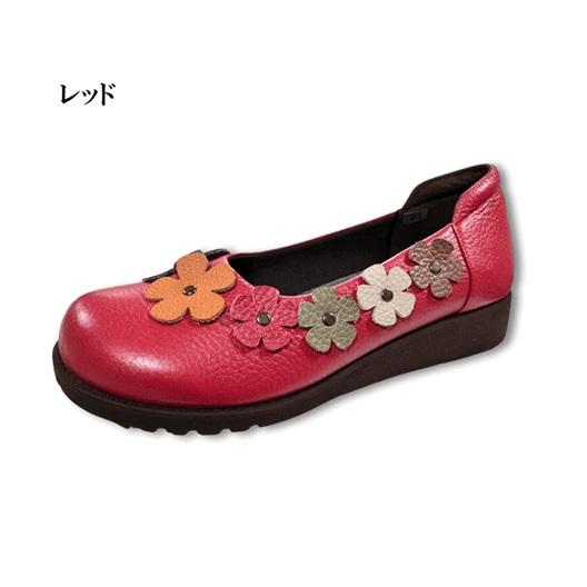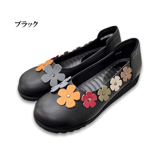 日本製 本革 レザーパンプス 花柄モチーフ 幅広 5e 外反母趾 コンフォートパンプス 軽量 履きやすい 歩きやすい カジュアル かわいい おしゃれ