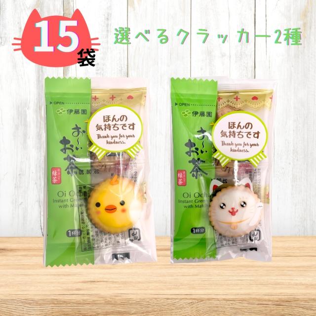プチギフト gift078 15個セット おーいお茶 ハートパイ アニマルクラッカー ねこクラッカー ほんの気持ちシール付き 個包装 ラッピング済み 異動 引っ越し お礼 転居 転勤 産休 お菓子 ギフト お茶 スティック 緑茶 ノベルティー