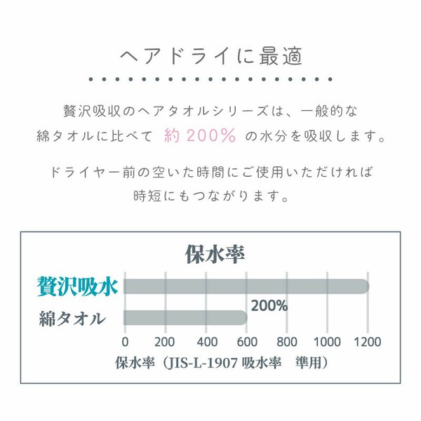 髪の毛の100分の1の極細繊維が、水分をすばやくキャッチ そっと押し当てるだけでしっかり吸水し、ドライヤー時間を短縮 濡れた髪への摩擦ダメージを抑え、デリケートな髪もやさしく守ります |