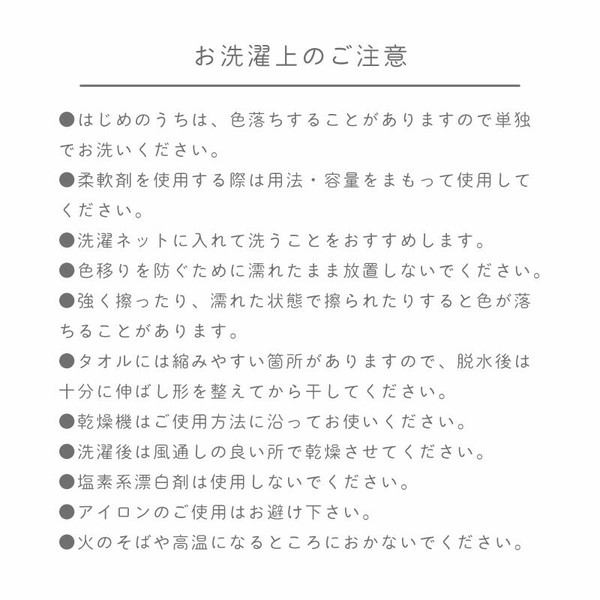 | 使用方法 | 髪の毛の100分の1の極細繊維によって繊維の間に隙間が生まれ、そっと押し当てるだけでしっかり水分を吸収します |