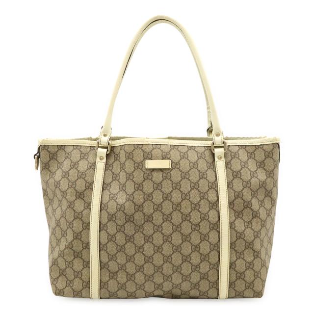 GUCCI グッチ GGスプリーム トートバッグ ショルダーバッグ ショルダートート PVC パテントレザー ダークベージュ アイボリー ゴールド金具 197953