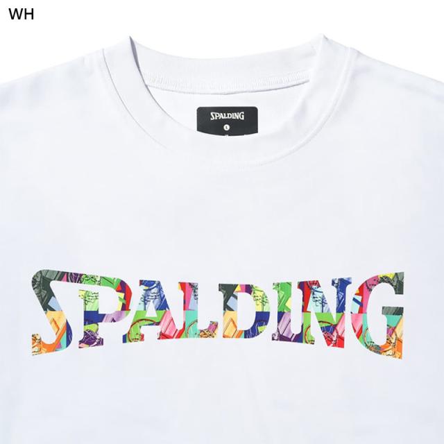 バスケットゴールをカラフルにコラージュしたSPALDINGロゴTシャツ