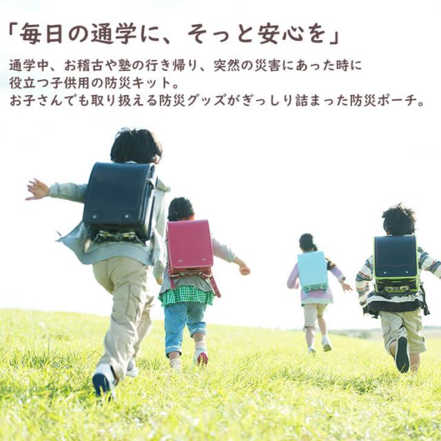 子供用防災セット 携帯用 防災セット 防災ポーチ 防災セット子供用 避難セット 避難グッズ 防災グッズ 緊急用トイレ 非常用トイレ ホイッスル 子供用軍手 ランドセル 通学 通園 習い事 塾