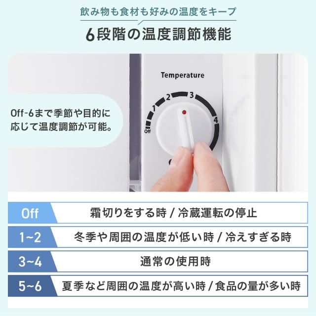 温度は6段階で調節でき、季節や用途に合わせて最適な冷却が行えます。