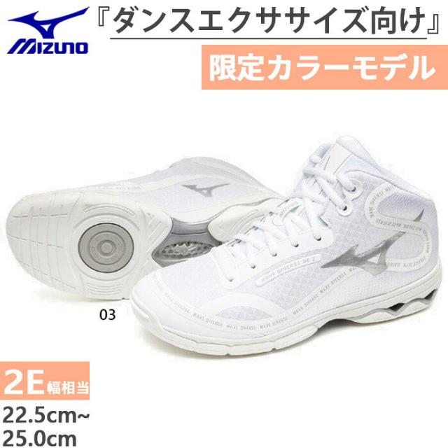 2E幅 ミズノ レディース ウエーブダイバース DE 2 フィットネスシューズ ダンス スポーツジム トレーニング エアロビ スタジオ ホワイト 白 送料無料 Mizuno 31GF2574