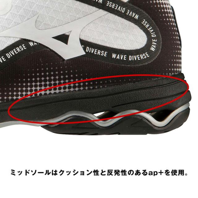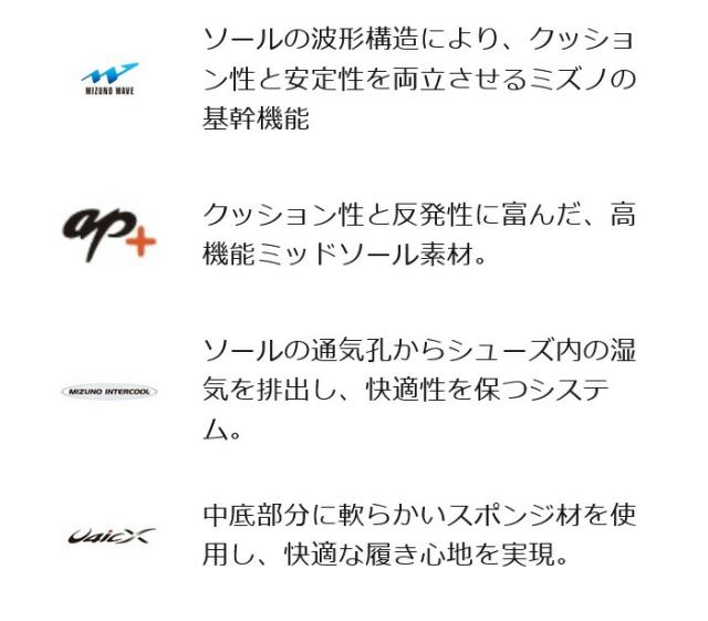 ソールの波形構造により、クッション性と安定性を両立させるミズノの基幹機能。