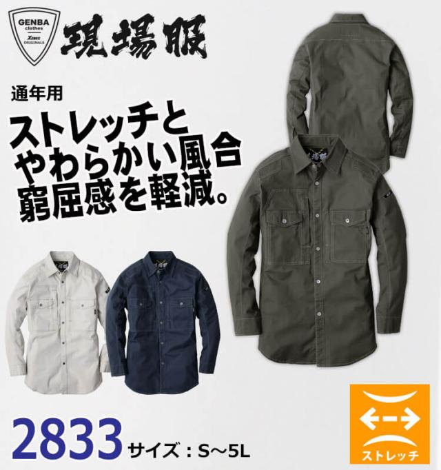 ジーベック XEBEC 長袖シャツ 2833 作業着 通年 現場服 GENBA 3Lサイズ