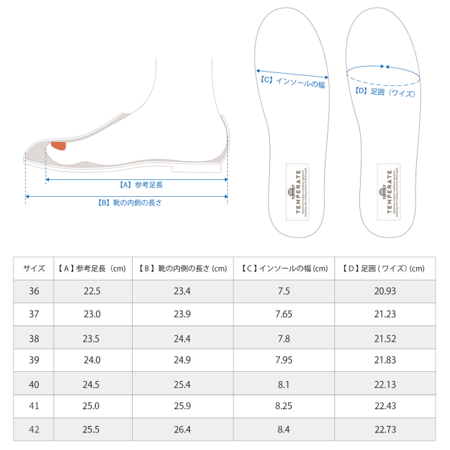 ・TEMPERATEサイズは一般的なヨーロピアンサイズとは異なります。