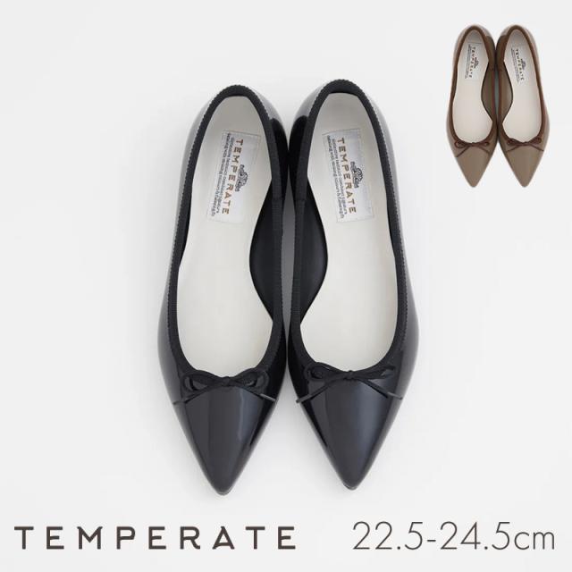 TEMPERATE テンパレイト レイン シューズ IRMA バレエシューズ レディース パンプス 完全防水 晴雨兼用 ポインテッド ローヒール ぺたんこ PVC シンプル ベーシック 黒 ブラック ブラウン レインシューズ 防水 送料無料