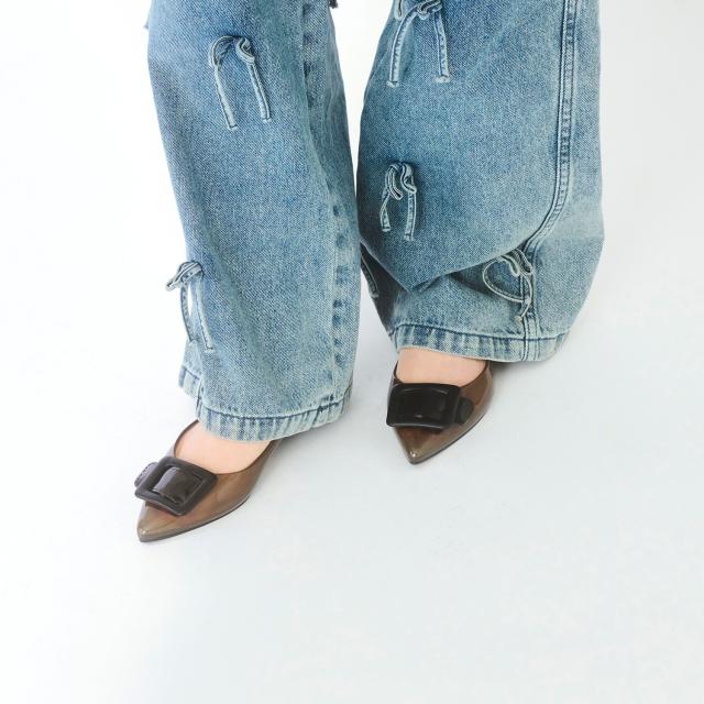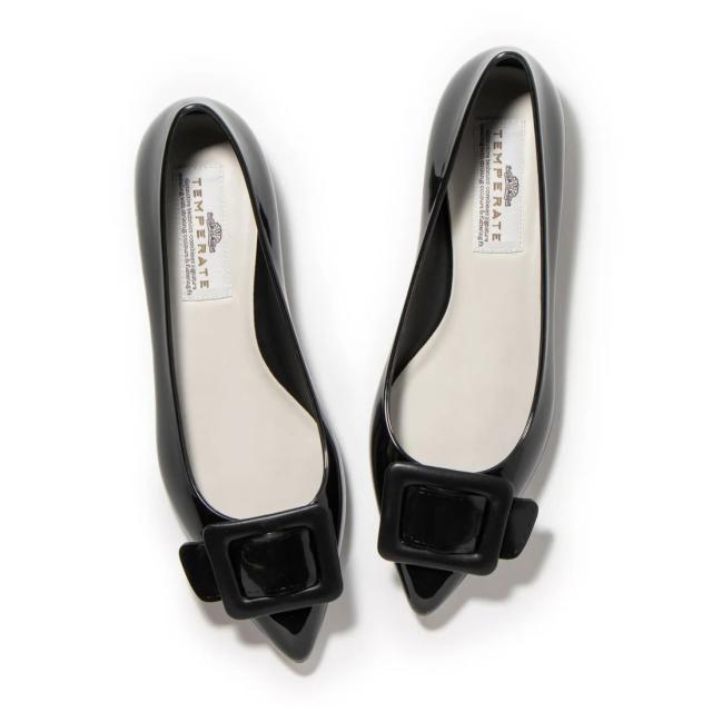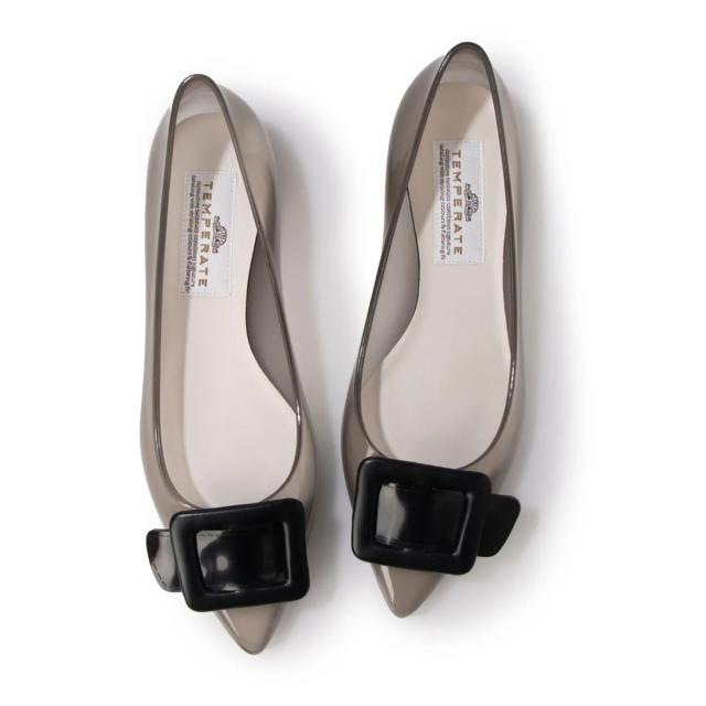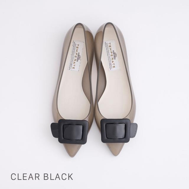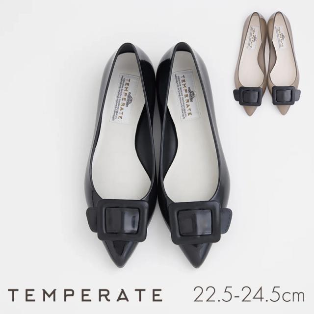 TEMPERATE テンパレイト レイン シューズ NINA バレエシューズ レディース パンプス 完全防水 晴雨兼用 ポインテッド ローヒール ぺたんこ PVC バックル クリア 黒 ブラック レインシューズ 防水 滑りにくい 送料無料