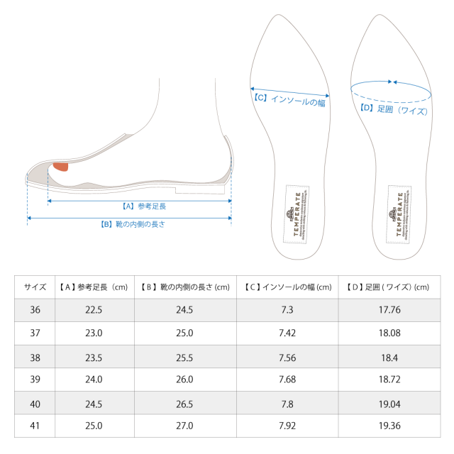 ・TEMPERATEサイズは一般的なヨーロピアンサイズとは異なります。
